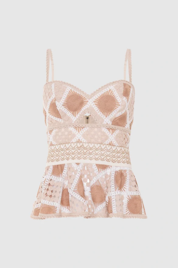 O top bossa crochet une o charme artesanal à elegância contemporânea. Com decote coração, alças delicadas e barra peplum levemente evasê, valoriza a silhueta com volume suave e feminino. Combine com a calça de renda coordenada para um look marcante e sofisticado da cabeça aos pés.