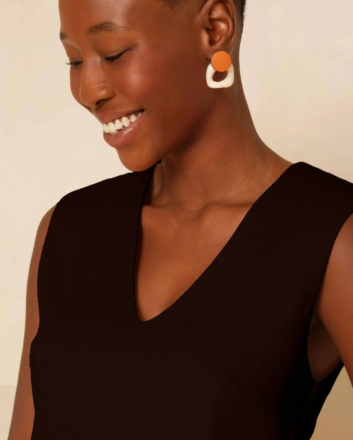 O tecido possui toque suave e estrutura leve, garantindo conforto e movimento sem abrir mão da sofisticação. Combine com acessórios dourados ou prateados para realçar o contraste e criar produções que vão do chic urbano ao elegante contemporâneo.