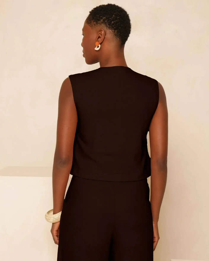 Versátil e refinada, é uma peça que transita perfeitamente do escritório ao jantar, acompanhando tanto uma alfaiataria de cintura alta quanto uma saia fluida ou jeans premium.