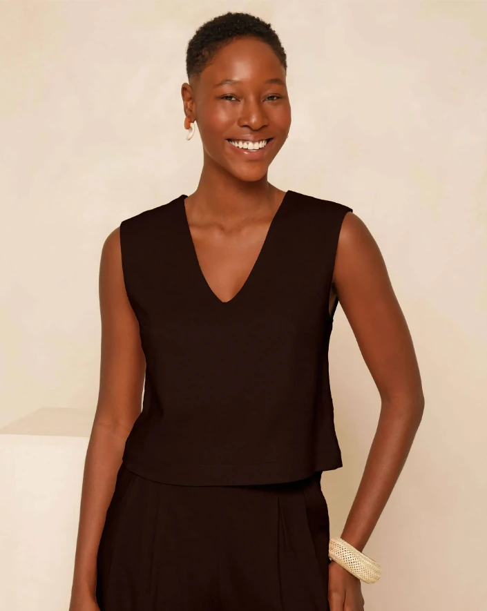 Com linhas puras e corte impecável, esta blusa em crepe preto traduz a essência da elegância minimalista. O decote em “V” valoriza o colo com sutileza e alonga a silhueta, enquanto o caimento reto confere leveza e modernidade ao visual.