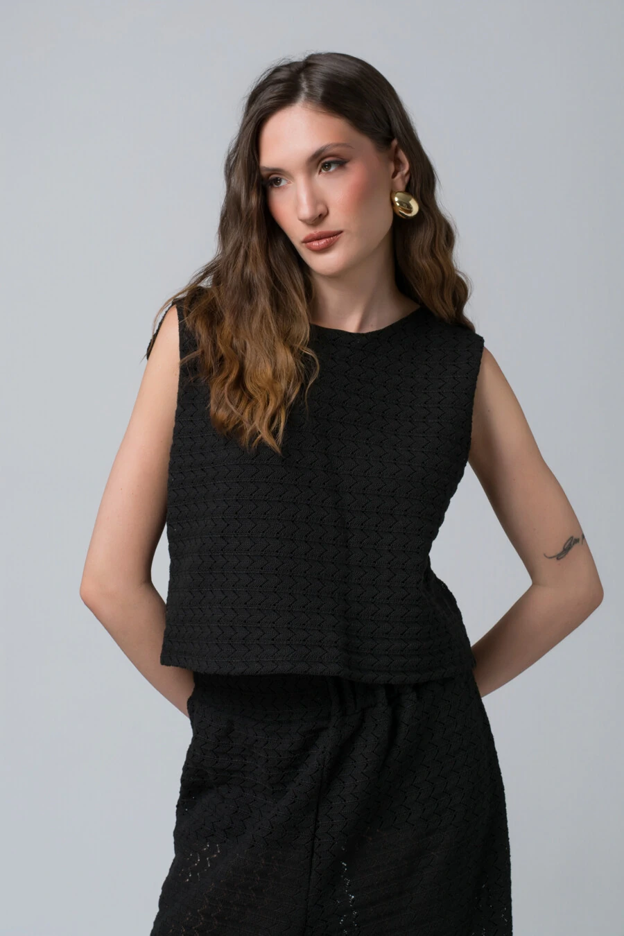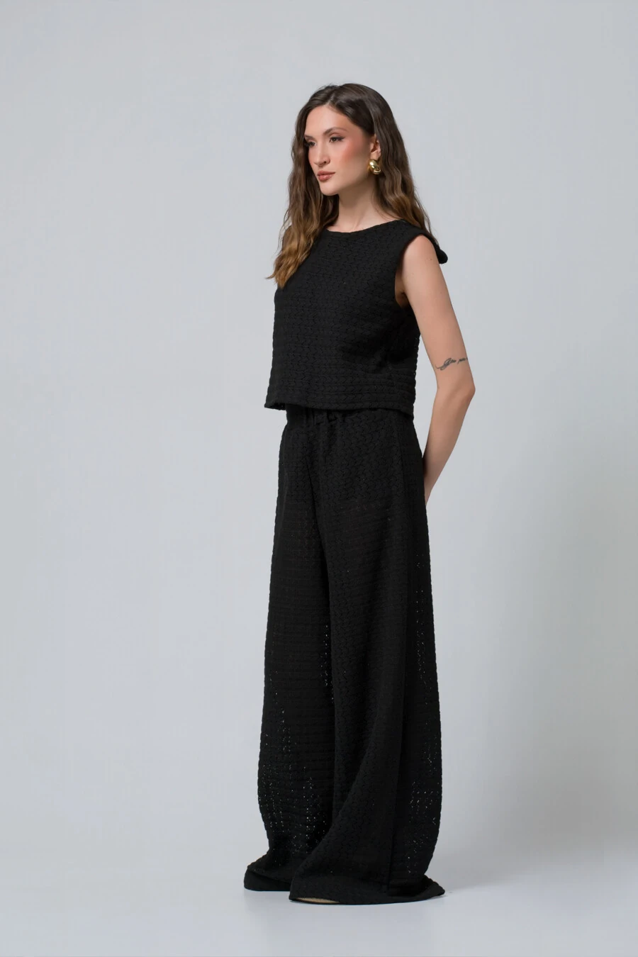 A textura delicada, somada ao shape leve e moderno, transforma este conjunto em uma peça-curinga no closet: sofisticada, confortável e com aquela presença que não passa despercebida. É o tipo de escolha que veste bem em qualquer cenário e exala elegância em cada detalhe.