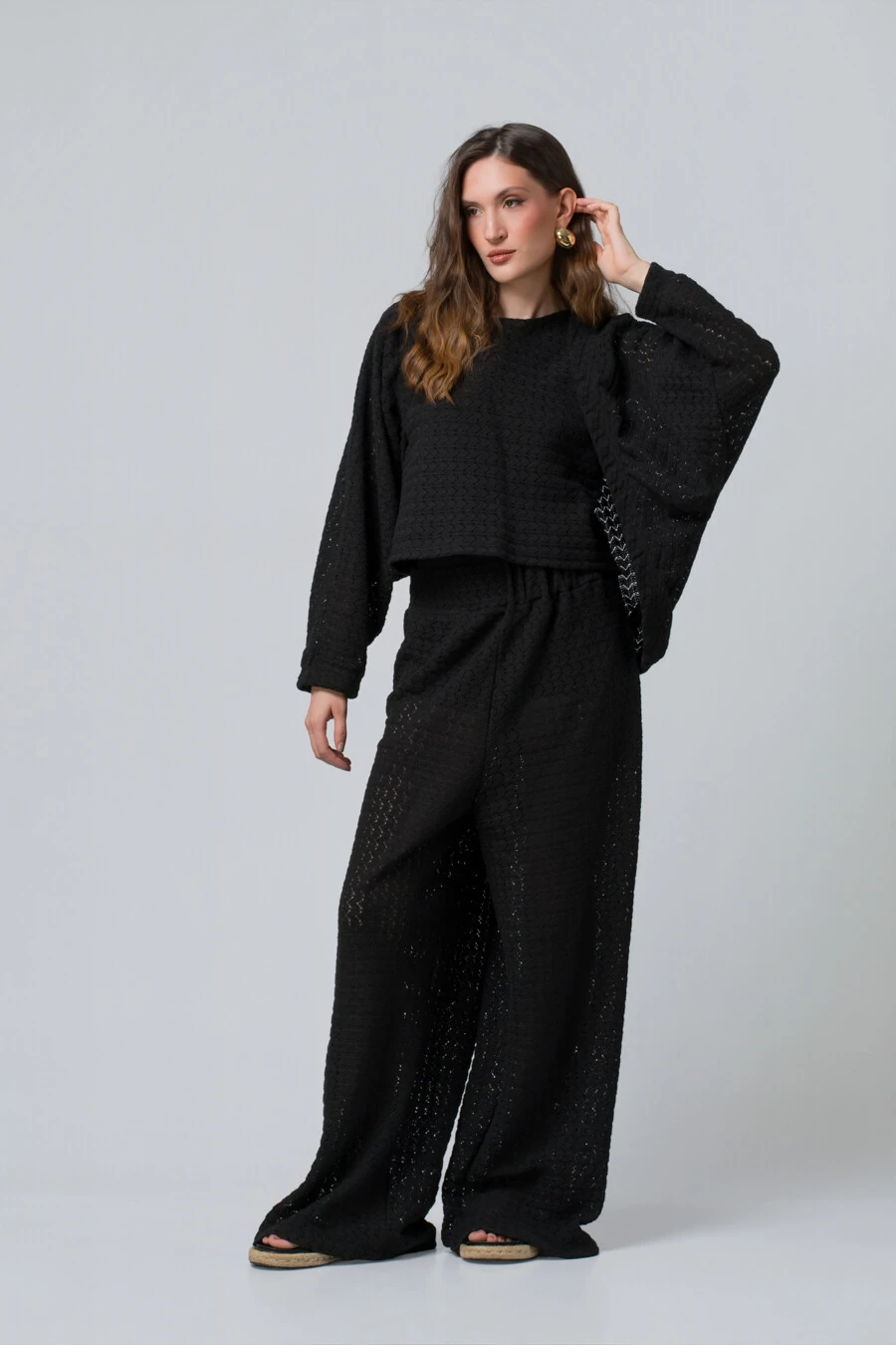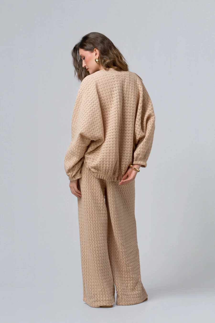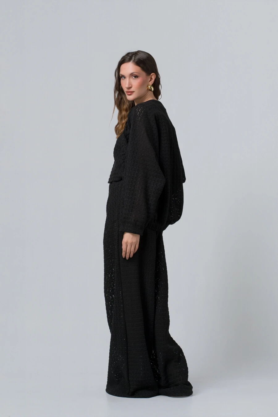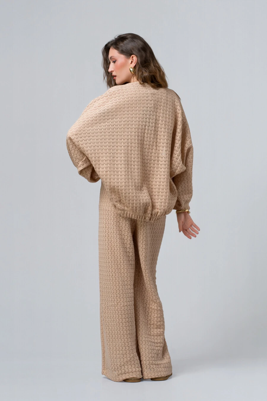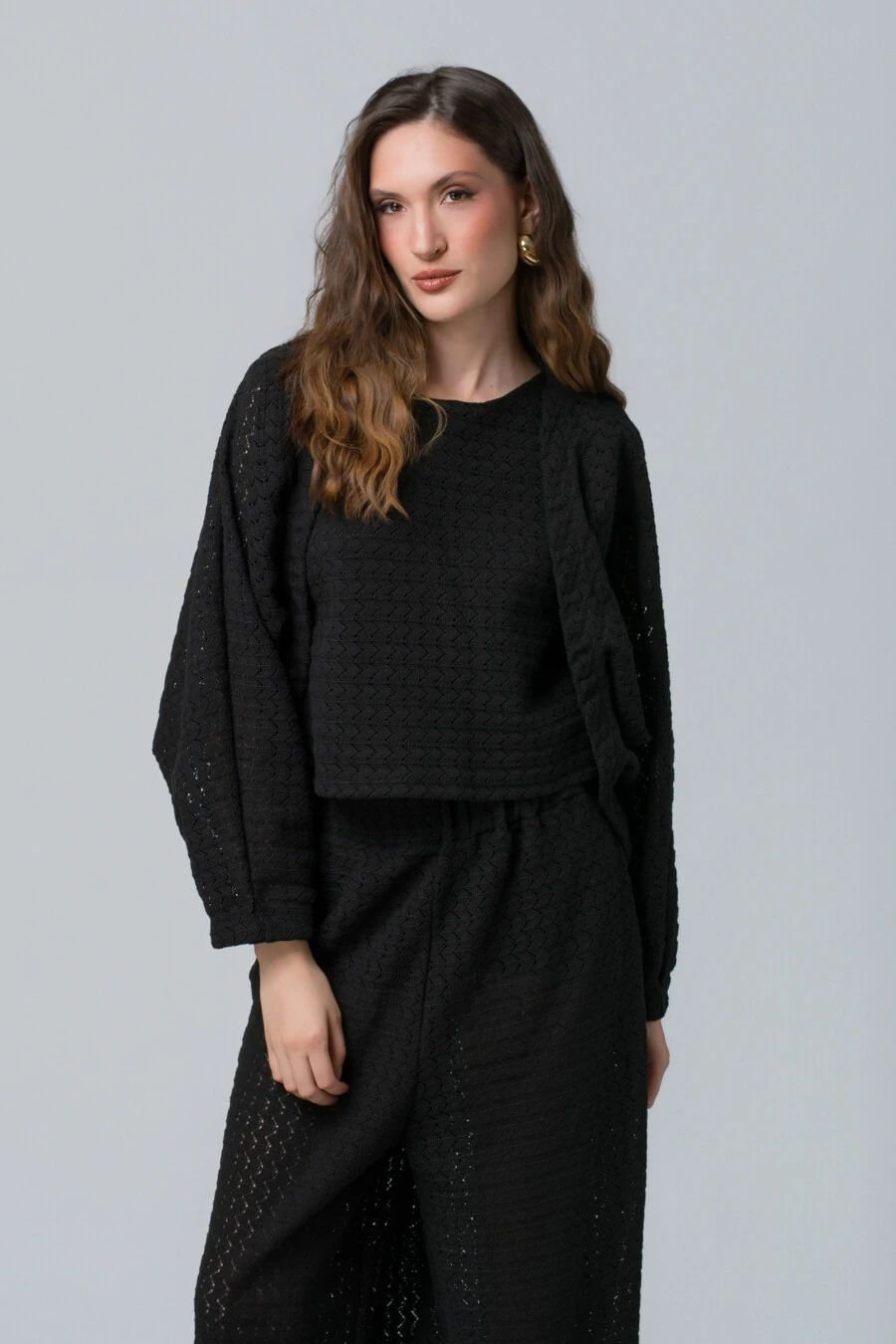 Com modelagem ampla e caimento fluido, o casaco cria um visual leve e contemporâneo, perfeito para quem aprecia moda com personalidade. As mangas amplas e o shape soltinho trazem movimento e uma presença marcante, enquanto o elástico sutil na barra adiciona estrutura e equilíbrio ao volume, garantindo um ajuste elegante sem perder o charme do oversize.
