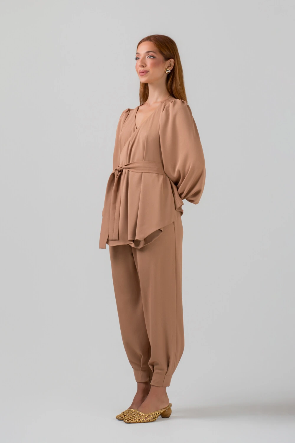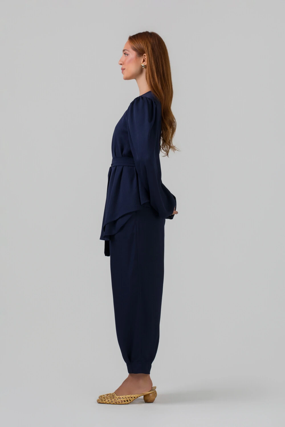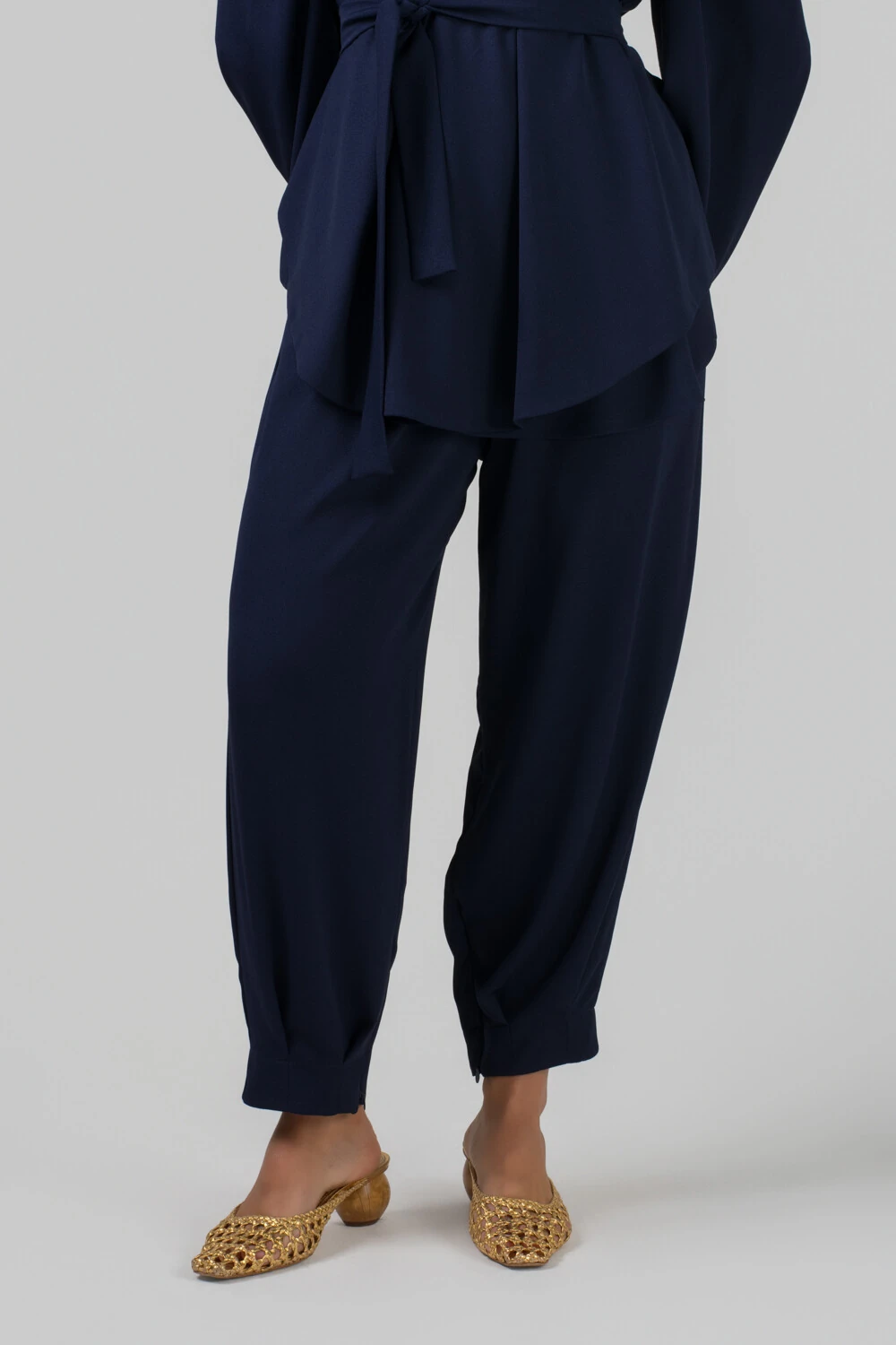 Seu design apresenta cintura bem estruturada e linhas limpas, que garantem um visual refinado e minimalista. A modelagem proporciona um caimento suave ao longo das pernas, finalizando com barra ajustada no tornozelo, detalhe que traz um toque atual e sofisticado à peça. O tecido de caimento leve acompanha os movimentos do corpo, proporcionando conforto ao longo do dia sem perder a elegância.