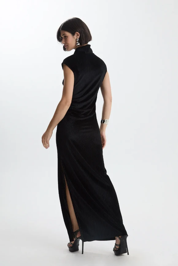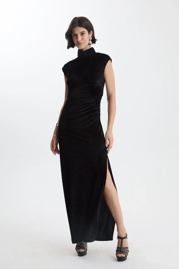 Vestido Gola Alta Veludo