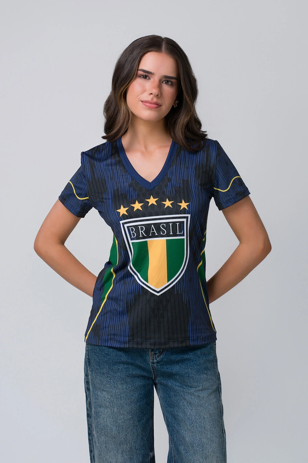 Nossa camiseta da Copa foi desenvolvida em confecção exclusiva, unindo design moderno, tecnologia têxtil e aquele toque esportivo que nunca sai de moda.